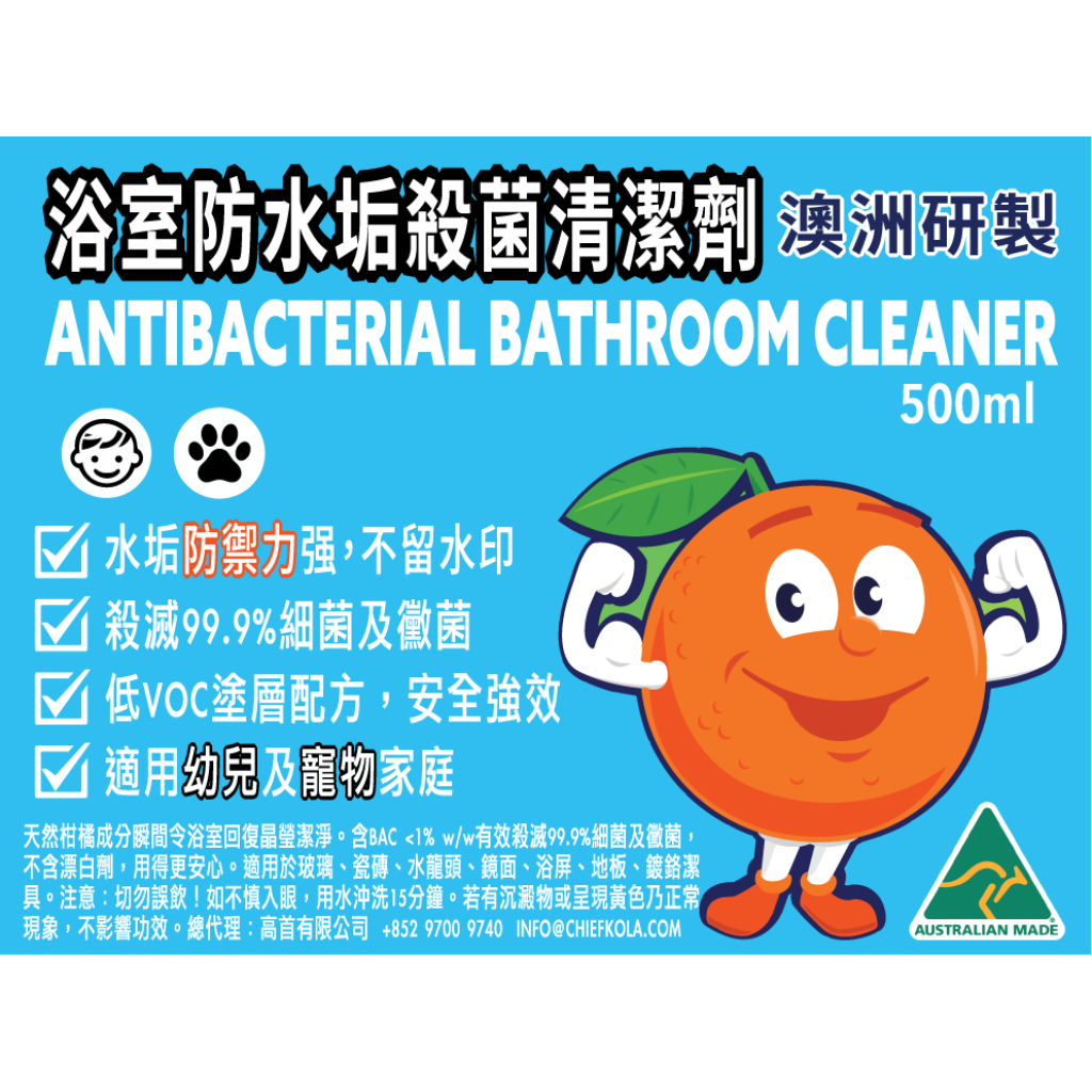 Australia's De-Solv-it Antibacterial Bathroom Super Cleaner cuts through soap scum, grime, and tough bathroom stains, killing 99.9% bacteria and mould spores and leaving surfaces crystal clean. Formulated with a special film coating that actively prevents water scale buildup and leaves glass and mirror surfaces streak-free and sparkling. Rinse-free, biodegradable, non-toxic, with a naturally derived fresh citrus scent. Safe for families with kids and pets.